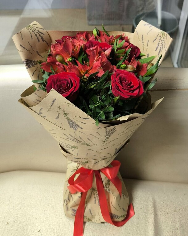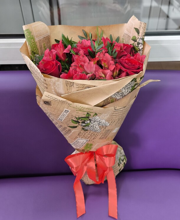 Прекрасный букет. Превосходное обслуживание. Всё отлично, я очень доволен. Рекомендую всем!