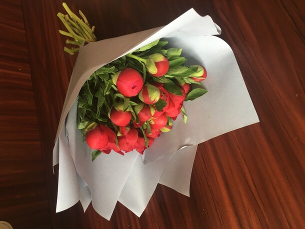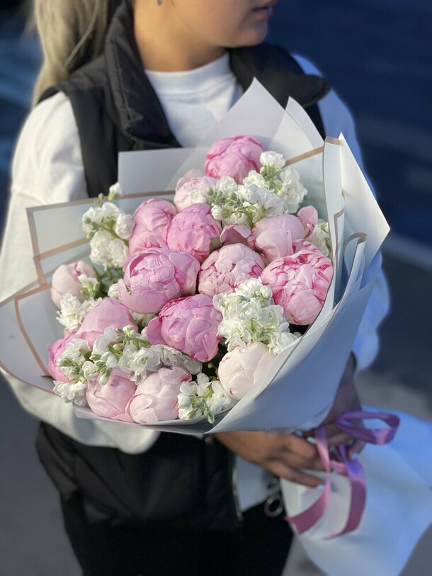 Все объяснили, помогли выбрать цвет ленты, рассказали по особенность пионов, а также доставили букет девушке