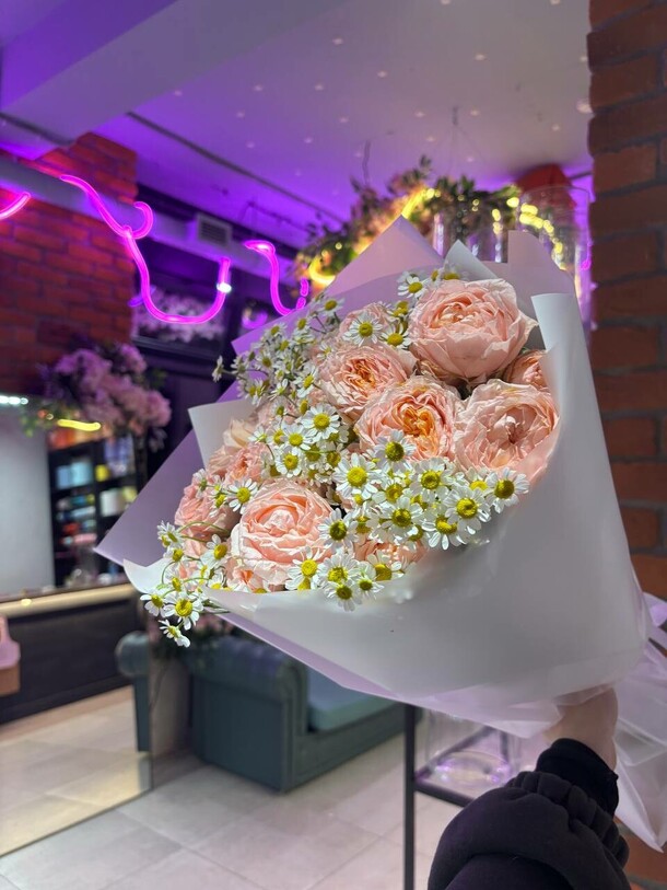 Цветы доставили с опозданием, курьер о купюре в 5000 не был предупржеден, хотя я указывал это в сообщении, розы жухлые еще и волос чей-то на упаковке))