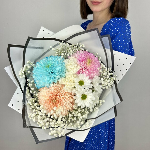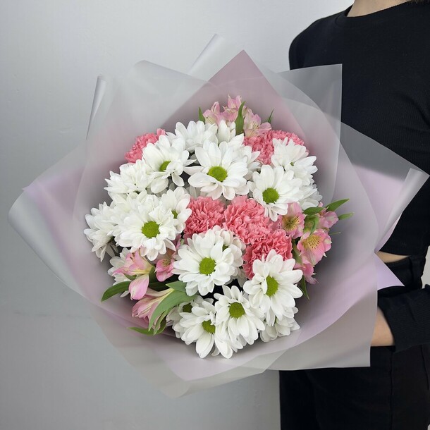 Приятная коммуникация в чате. Добавили открытку по просьбе, подписали! Курьер любезно подождал получателя при вручении. Букет точно как на картинке. Отличные цены. Благодарю!