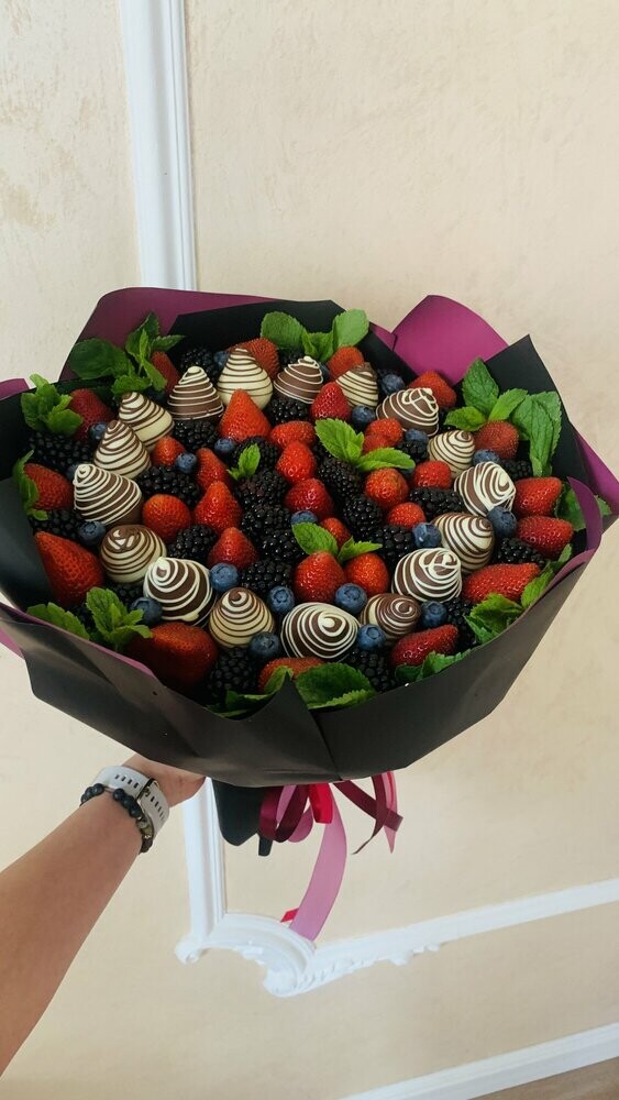 Красивый и вкусный букет! Доставили точно в срок, свежий и вкусный презент. Выбирала в подарок маме на ДР. Ей очень понравился. Спасибо огромное!