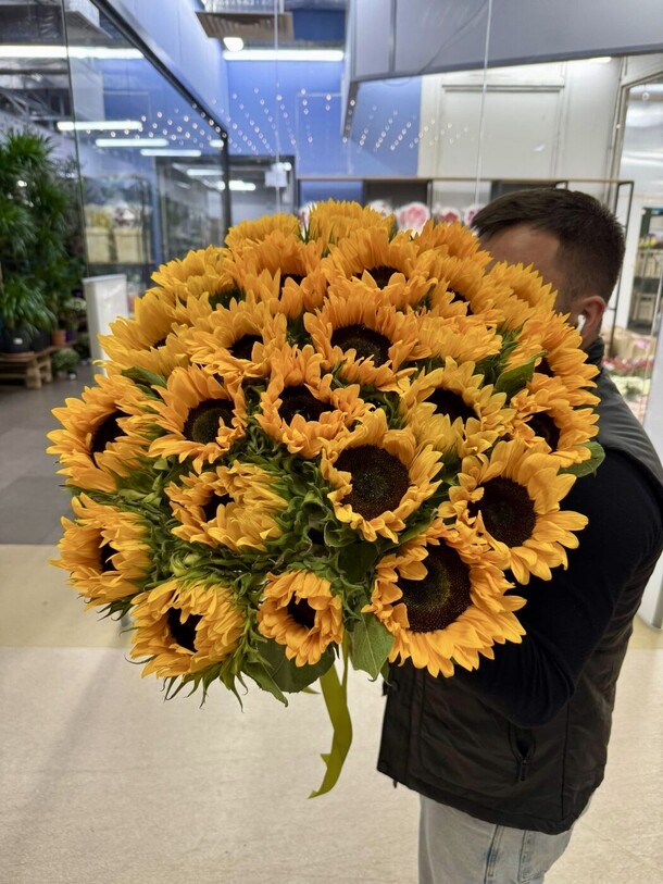 Шикарный букет - эмоции очень много! Утром будем радовать именинницу вашим красивым букетом из ее любимых подсолнухов ❤️