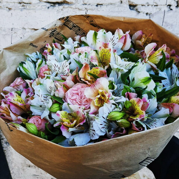 Букет поменьше, чем на фото + были стебли, с которых цветы срезаны (не буду утверждать по какой причине). Сам букет доставлен быстро