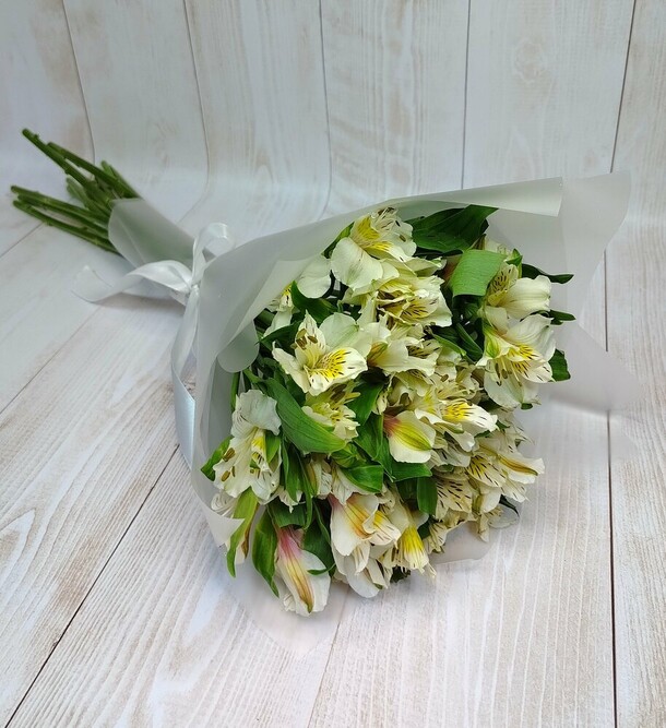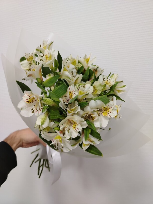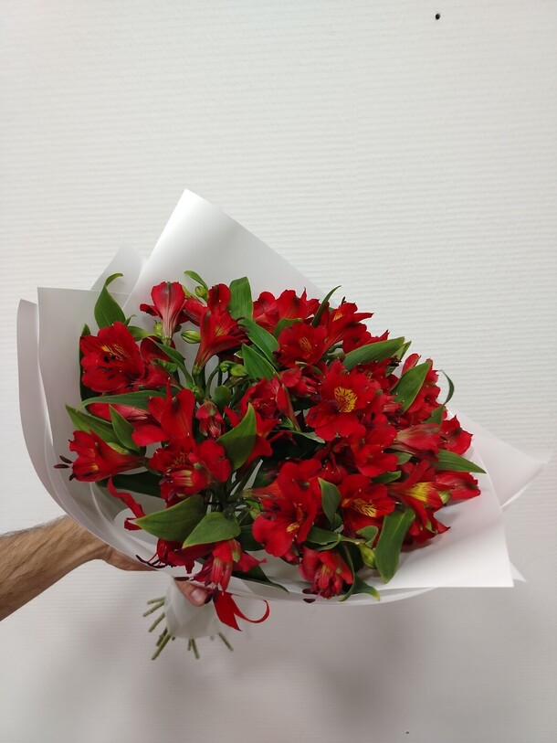Букет соответствовал фото при компоновке композиции, надеюсь, бутоны распуститься к вечеру и будут соответствовать букету на рекламном фото. Приятно получить доп/бонус в виде небольшого букетика.