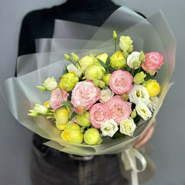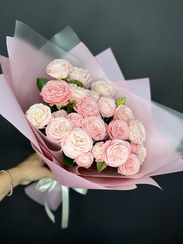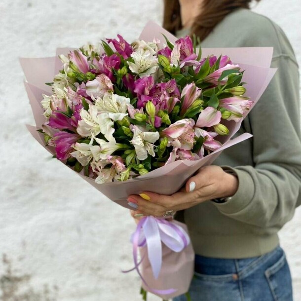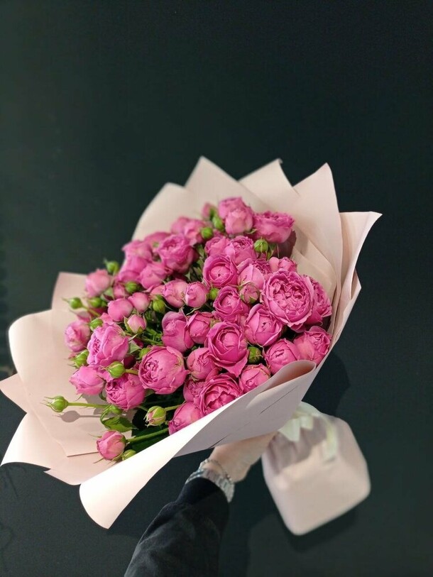 Спасибо!. на улице мороз, цветы надежно упакованы. Доставили быстро. Курьер дал консультацию как дальше сохранить букет. Цену не накручивали. Спасибо!!!!