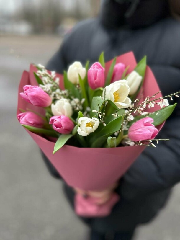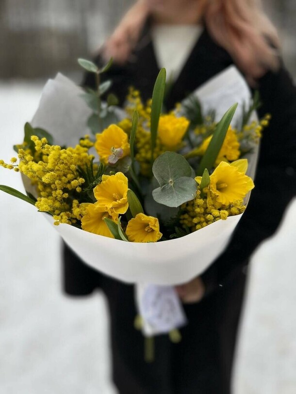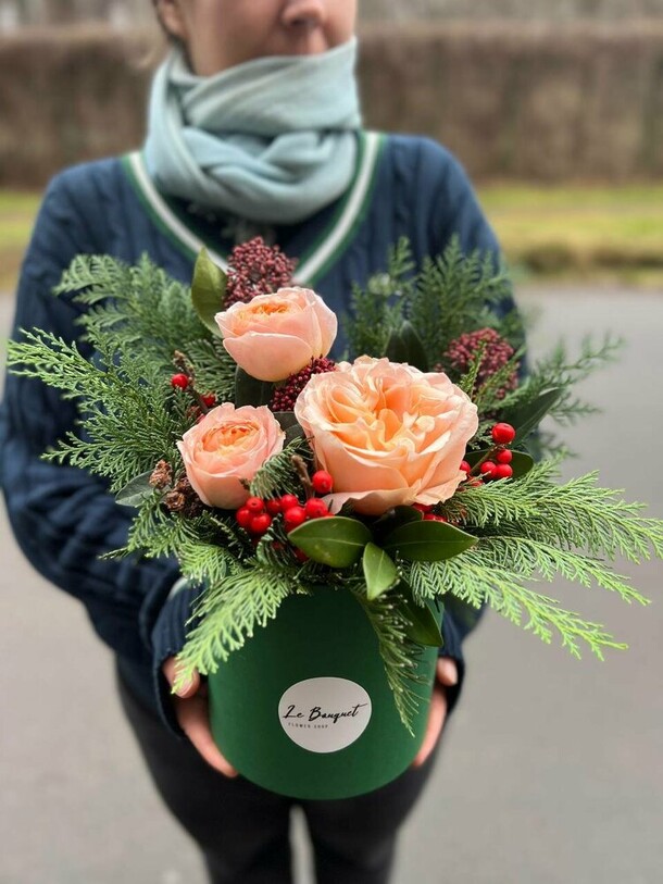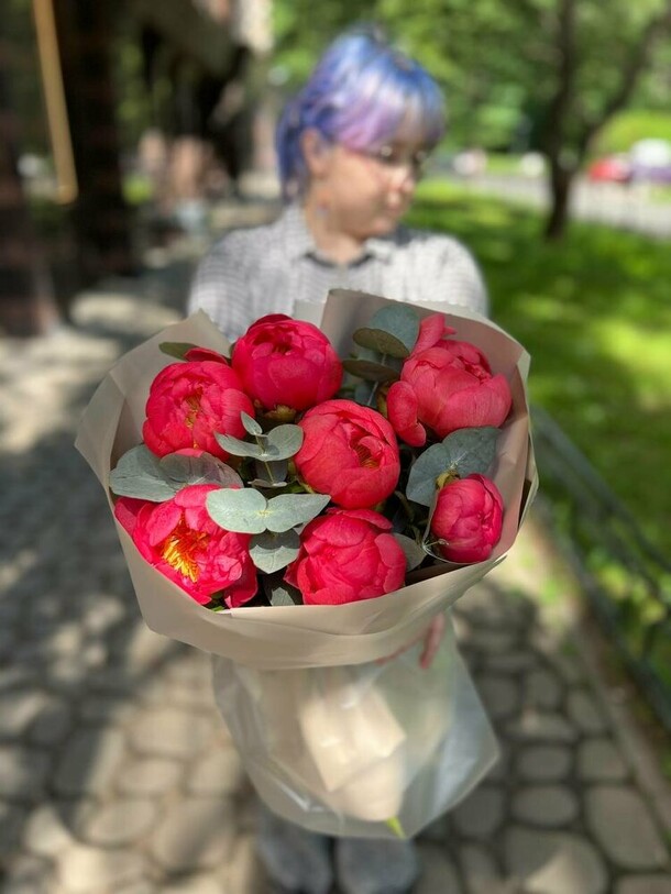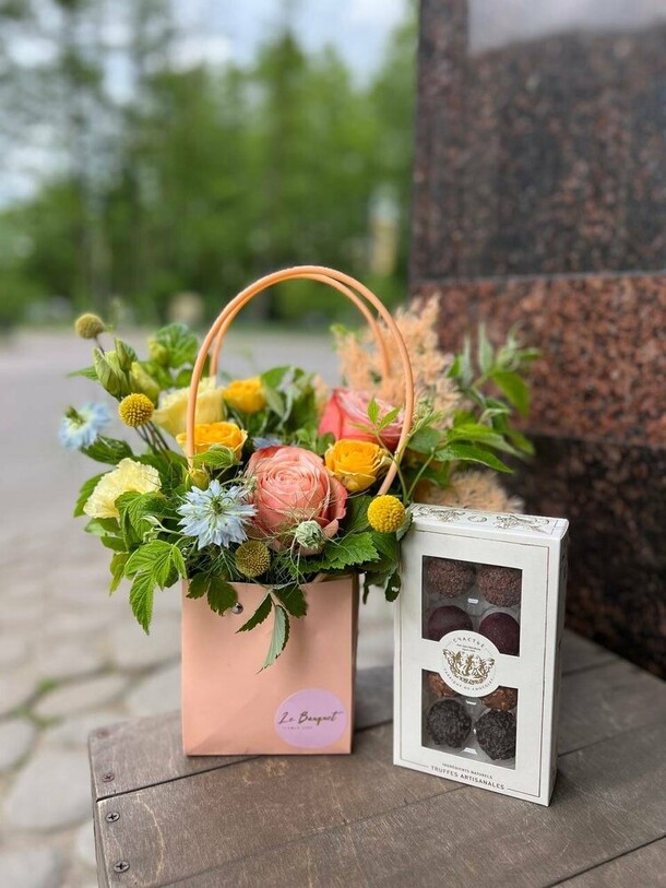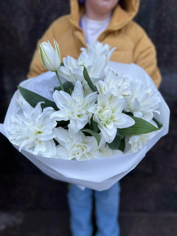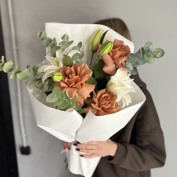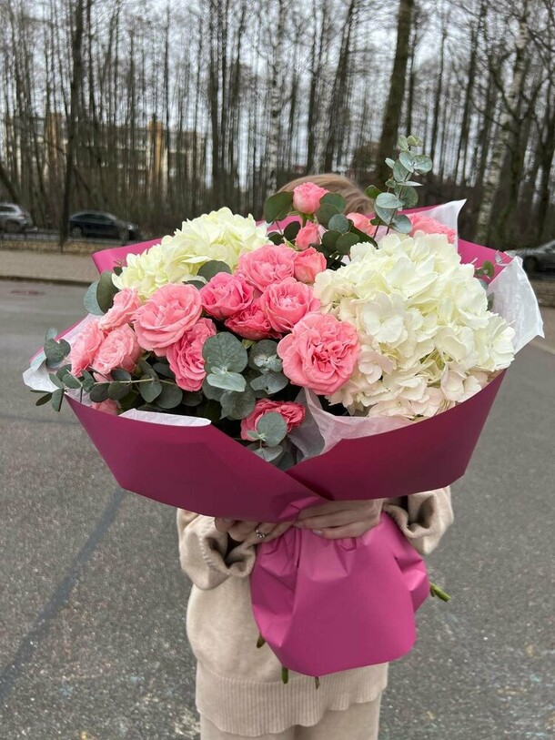 Композиция очень свежая, гармоничная, отлично собрана и упакована. Своевременная доставка, сотрудники салона всегда на связи, компетентны, доброжелательны!