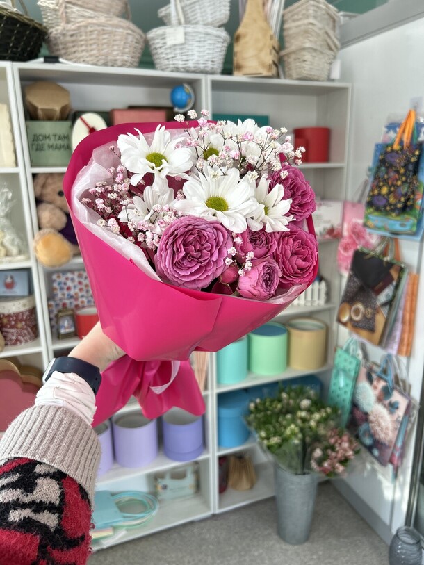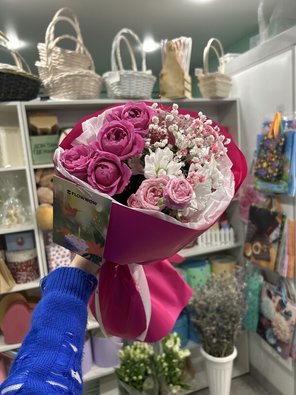 Это не букет, а кривой, полупустой, лысый веник в красивой обертке. Заказывала в подарок маме на день рождения, на фотографиях, очень пышный и красивый, в жизни это ужас. Настроение испорчено, деньги на ветер. Прийдется благодаря такой «прекрасной» работе идти за новым букетом, а этот будет на мусорке.
