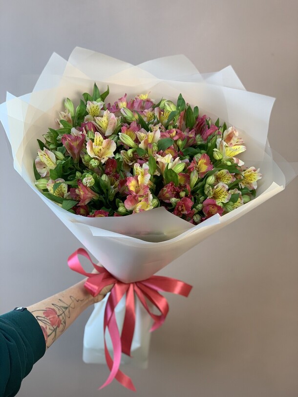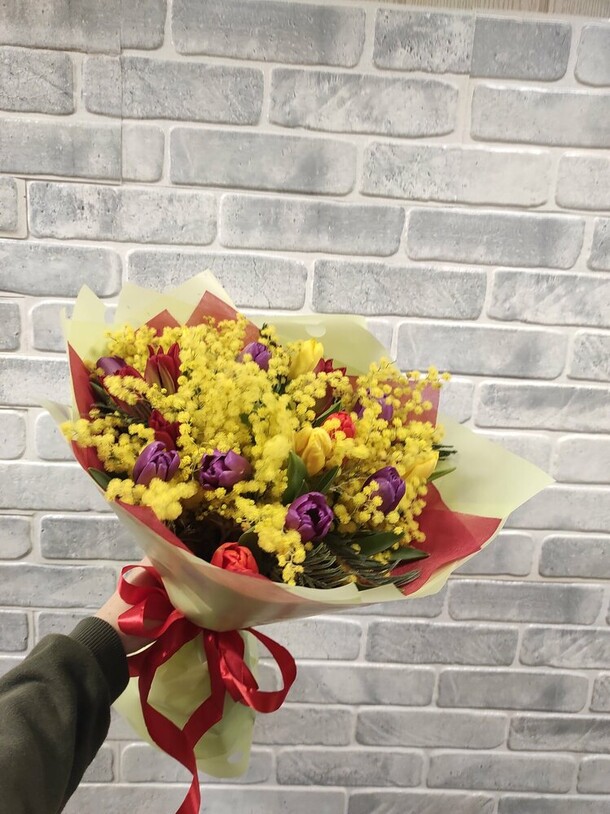 Букет прекрасный! Свежий, не помятый, именинница довольна.