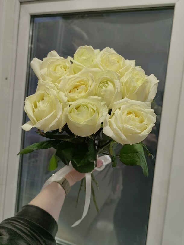 Все отлично, букет красивый, доставили к указанному времени. 11 пионовидных роз из 10