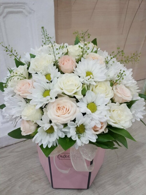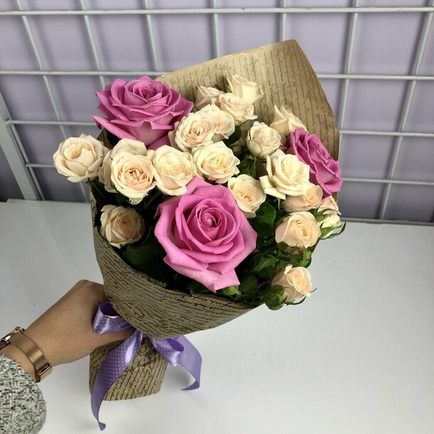 очень красивый букет, упаковка красивая и доставка вовремя ,без задержки