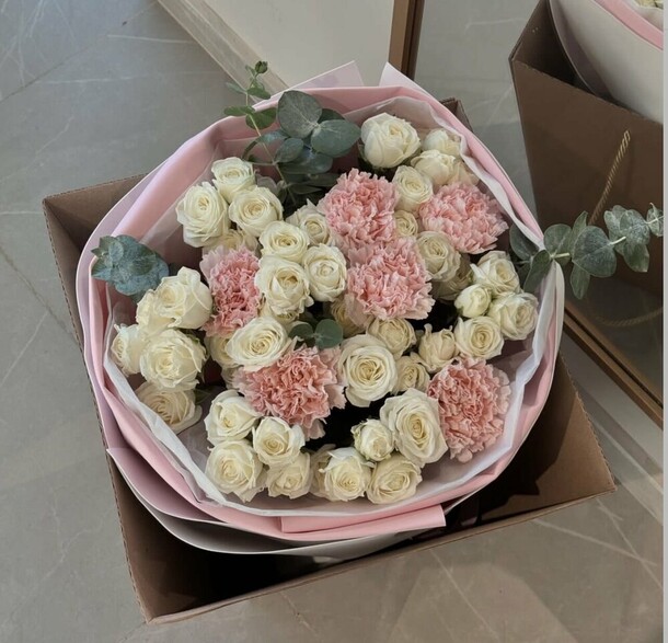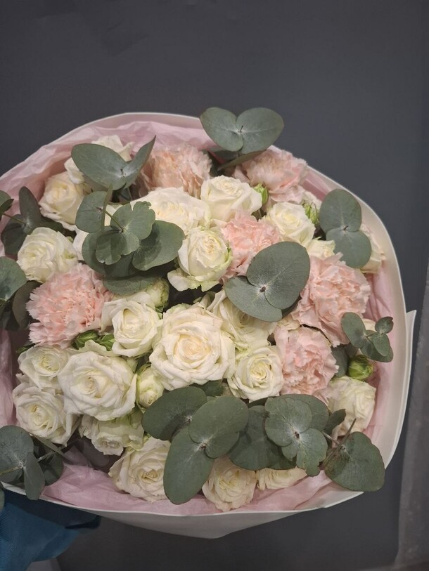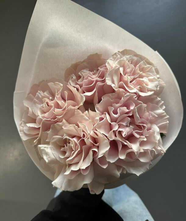 1. На фото персиковые гвоздики, в букете розовые. Но букет красивый, свежий! Все равно понравился.