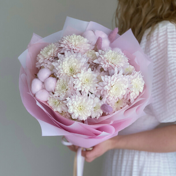 Красивый букет, свежие цветы и отлично упаковано. Доставка немного опоздала, было бы хорошо, если бы предупредили об опоздании.
