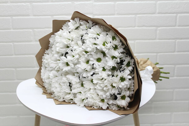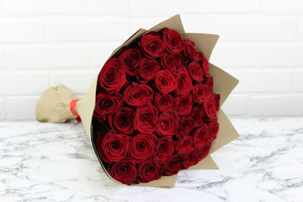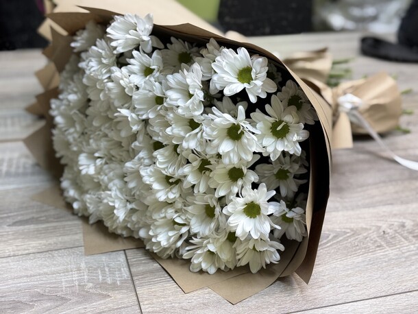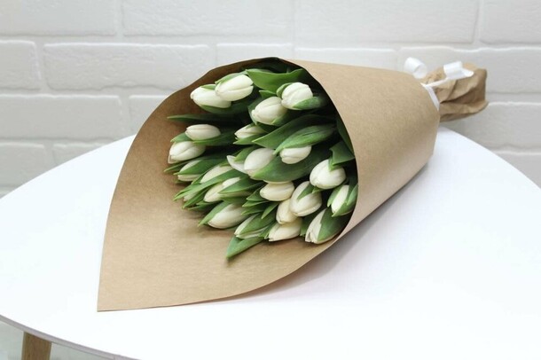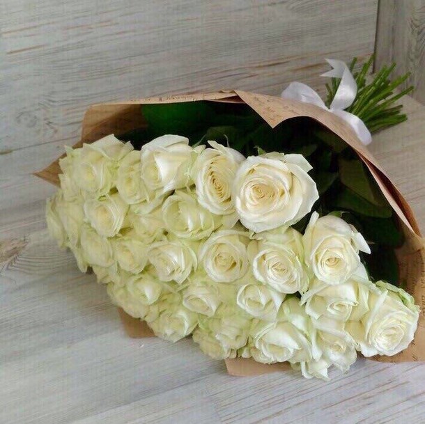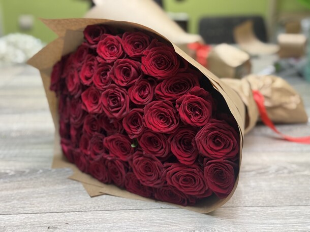 Букет в принципе соответствует фото, но детали портят всё : цветы частично с битыми бутонами, есть прямо половины лепестков не хватает. Крафтовая бумага очень жёсткая как будто с упаковки мебели, ну а лента которой перевязал букет просто огрызок - с такой лентой даже дарить стремно
