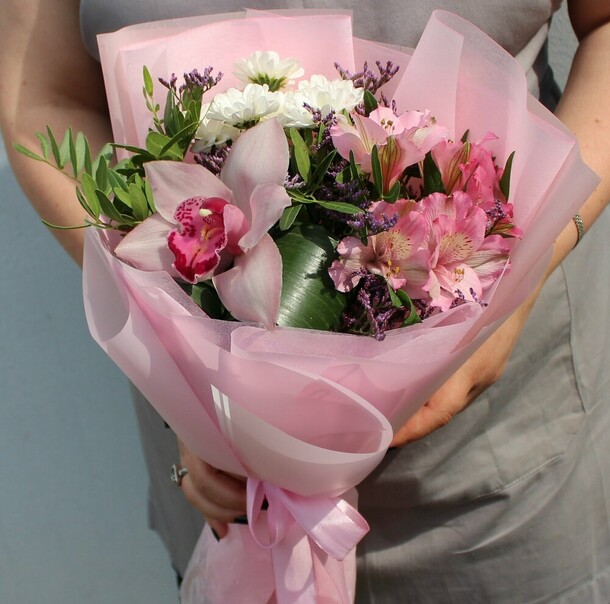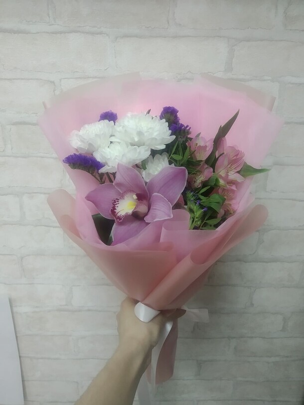 Все очень замечательно. флористы помогли собрать чудо букет. доставиои вовремя. видно работу профессионалов. спасибо всем.