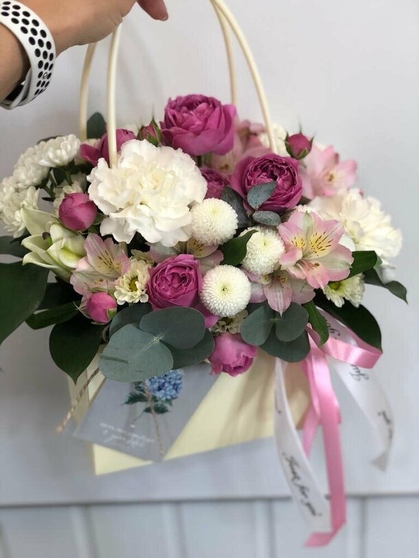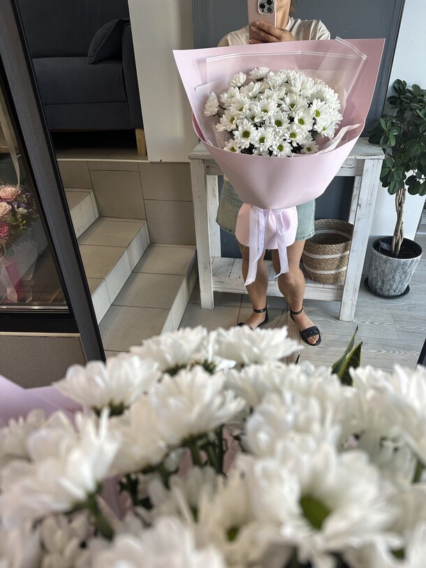 Девушки собрали невероятной красоты букет, запаковали в пергамент от дождя и очень подняли настроение! Сервис и соответствие фото очень порадовали, цветы восхитительные, обращусь к вам ещё 🤍