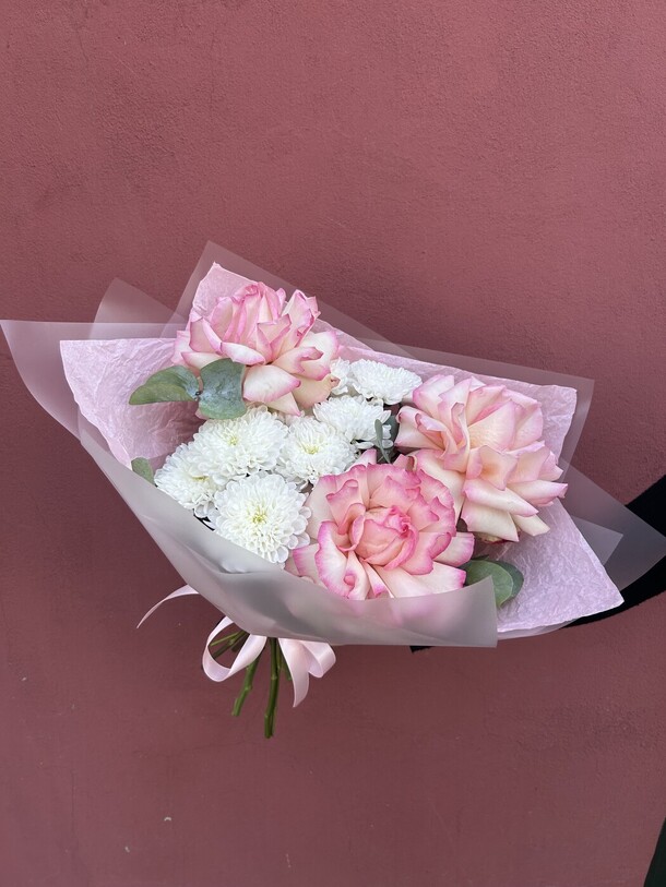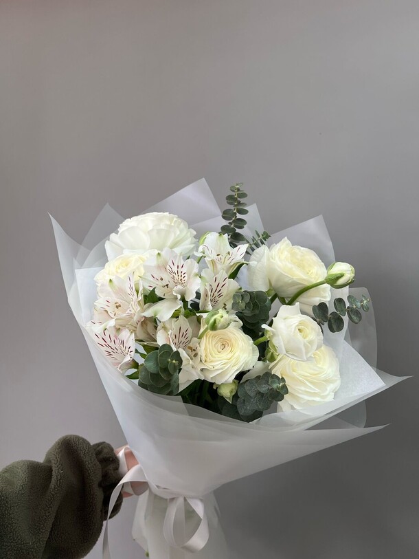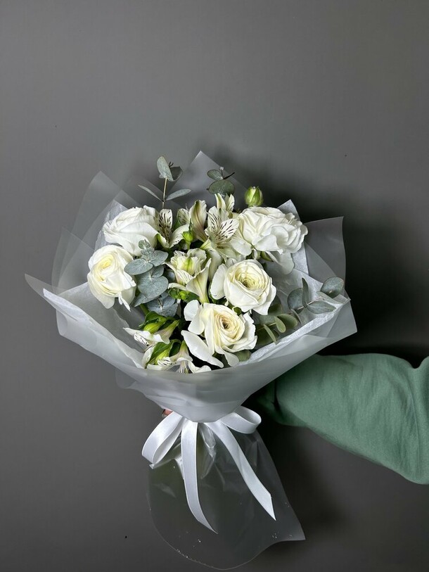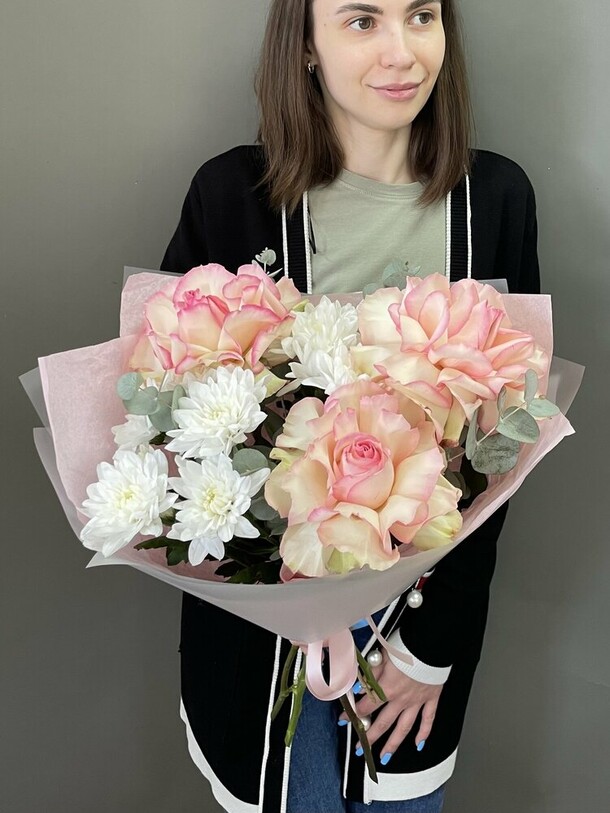 Букет свежий но очень маленький. Понимаю что размеры указаны но в ракурсе на фото выглядит более привлекательно чем в живую. Доставка очень быстрая!