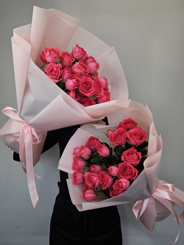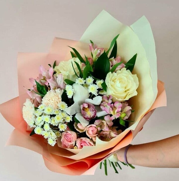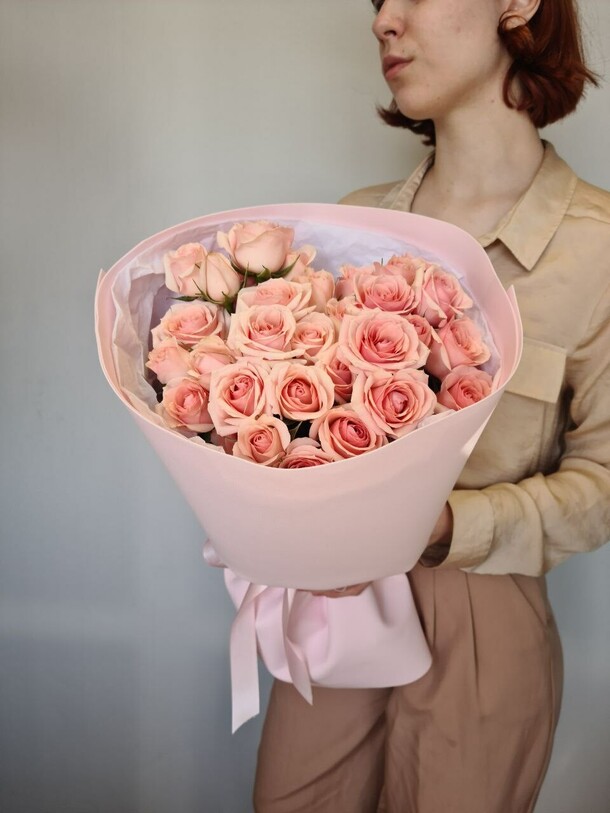 Заказала доставку маме в день рождения букета из нежных кустовых роз розового цвета. Букет свежий, красивый. Приятный сервис. Доставили в указанный срок. Спасибо.