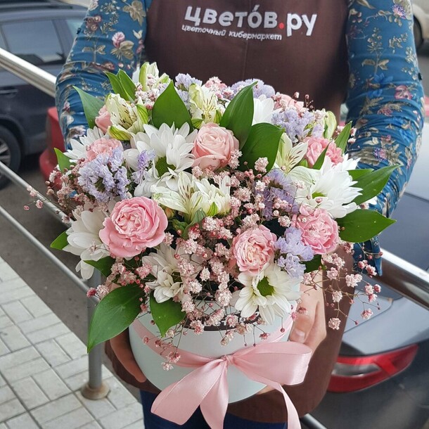 Букет приехал помятый так, что с цветов, расположенных по бокам осыпались многие лепестки. Курьер не позвонила перед приездом, хотя специально в чате уточнил, какой порядок выезда. А если бы получателя не было бы дома? Это же заказ не для себя, где я жду нужную вещь. а подарок для девушки, сюрприз. В итоге принимал цветы сам. Не прислали фото букета перед отправкой, как это было запрошено.