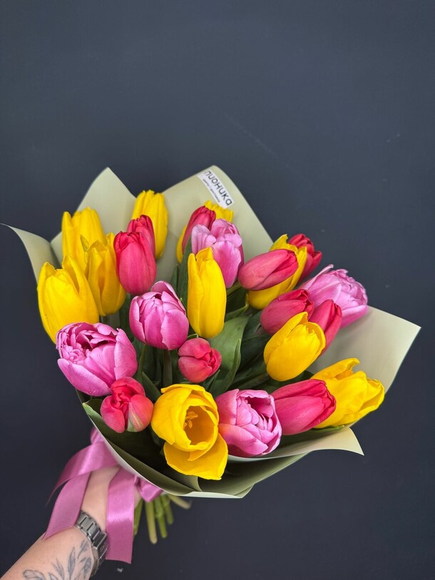 Хороший букет, ну правда чуть не схож с фото и за место белых тюльпанов были розовые, а так норм
