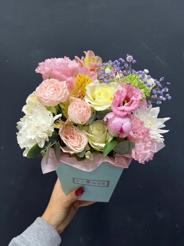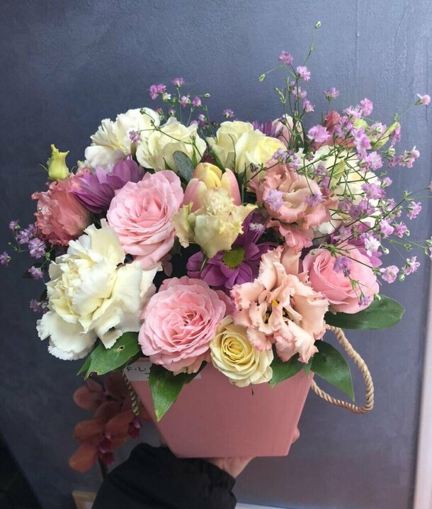 Заказ исполнен на отлично! Всё, как обговорили с флористом, за что отдельное спасибо. Получатель был в восторге- композиция нежная, оформлена со вкусом, упаковка соответствующая.