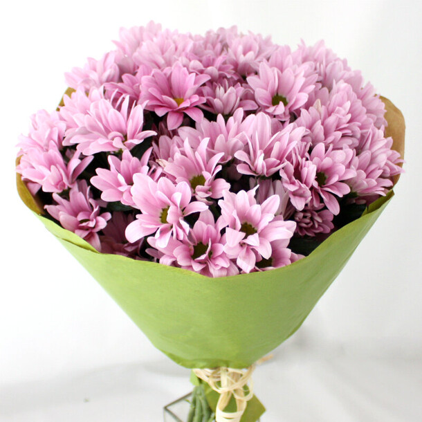 Хризантему покрасили с баллончика.Вокруг видно остатки лака.Как вообще такие цветы можно вставлять в композицию.Больше никогда не закажу тут ничего.Особенно за такую цену.