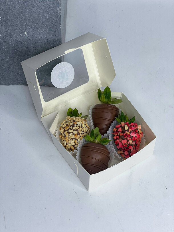 Классная клубника, но когда заказывали в белом и розовом шоколаде, то была больше, а так, очень вкусно!
