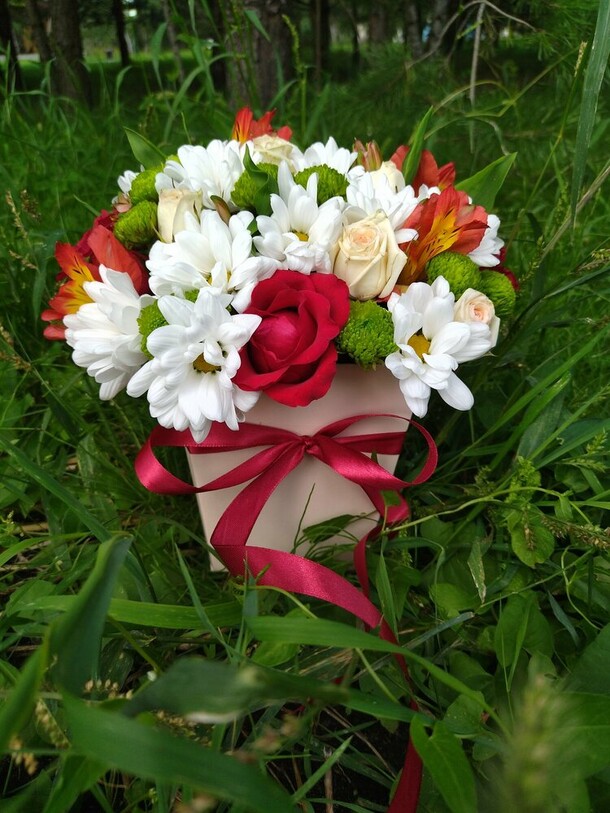 Простой, но изящный букет. Радует, что цена соответствует товару, без дикой наценки. Фото=реальность. Спасибо!