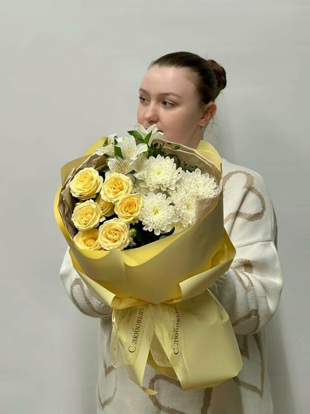 Курьер заранее не позвонил, как просили, по просьбе получателя оставил букет в подъезде и двери.