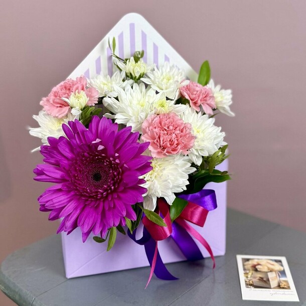 Учтены все пожелания к доставке. Милый флорист, приятный курьер. Спасибо
