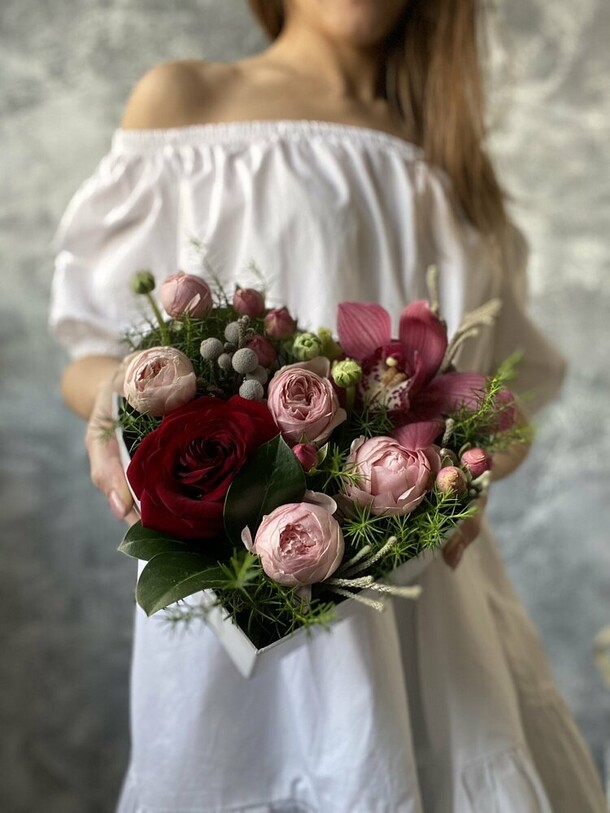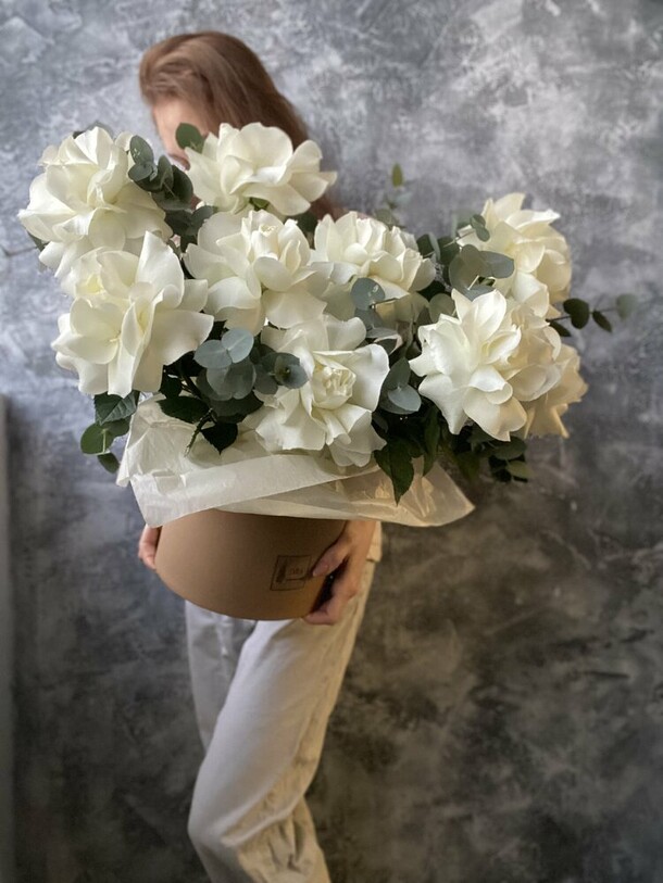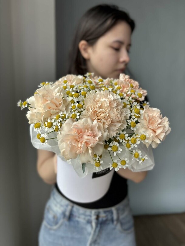Цветы были не свежие и в жизни вся композиция низкая:(