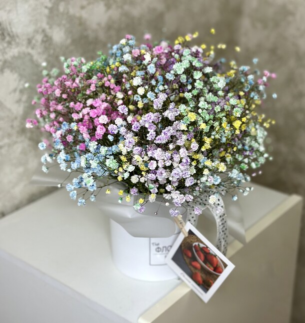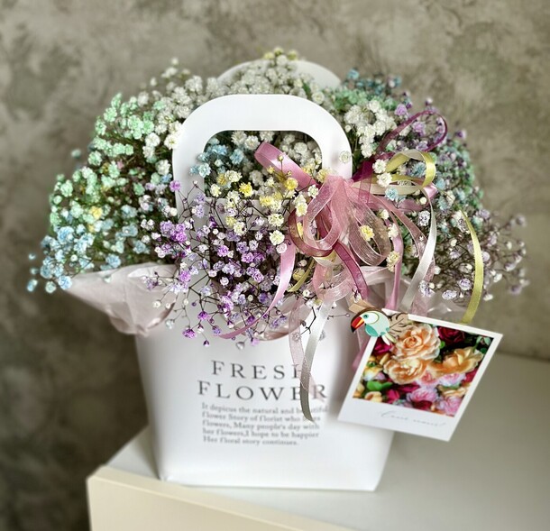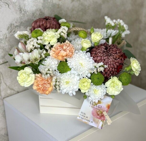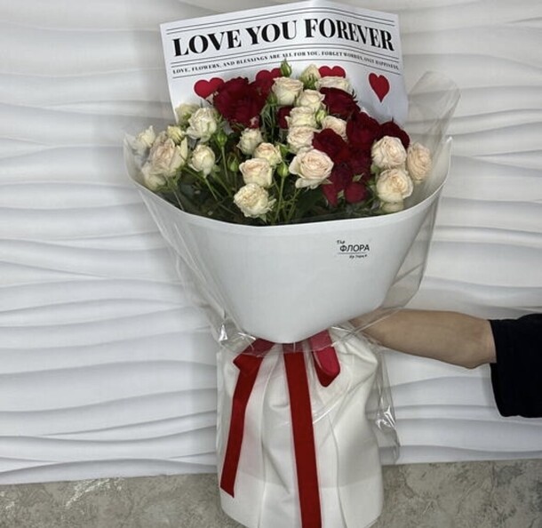 Цветы невероятные! Свежие, красивые, добавила открыточку, видно что подписали с душой. Спасибо вам за вашу работу!