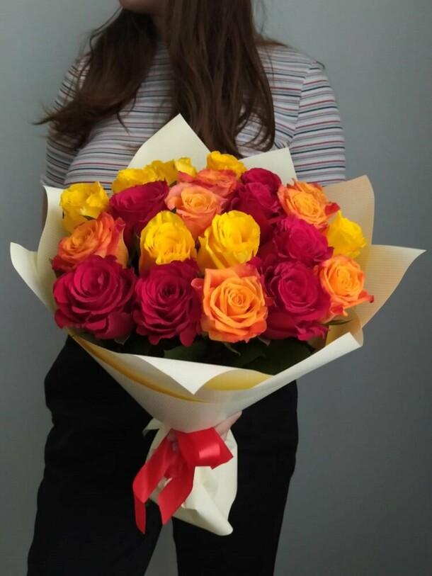 Заявленный букет отличается от доставленного полностью, фото до доставки не направлено. Например, бутоны разного размера, в разной степени распустившиеся, совсем другая цветовая гамма, да и гораздо шире, чем в заявленном букете.