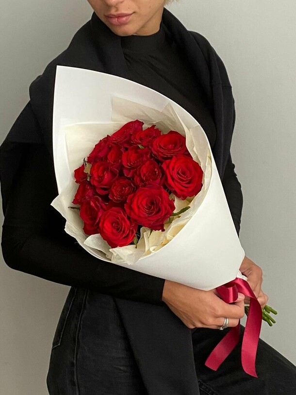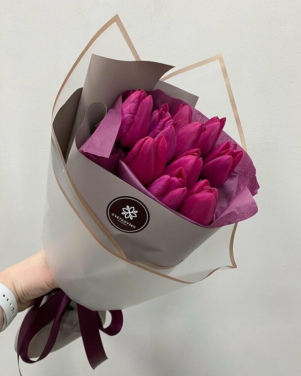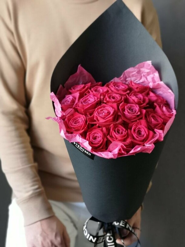 Перед доставкой не сделали фото. Не позвонили получателю, опоздали на 1,5 часа. Один цветок был сломан изначально, остальные вялые, еле живые и к вечеру совсем опустили головки. Утром в живых осталось только три штуки... Больше заказывать не буду. Кому приятно на праздник получить букет завядших цветов!?