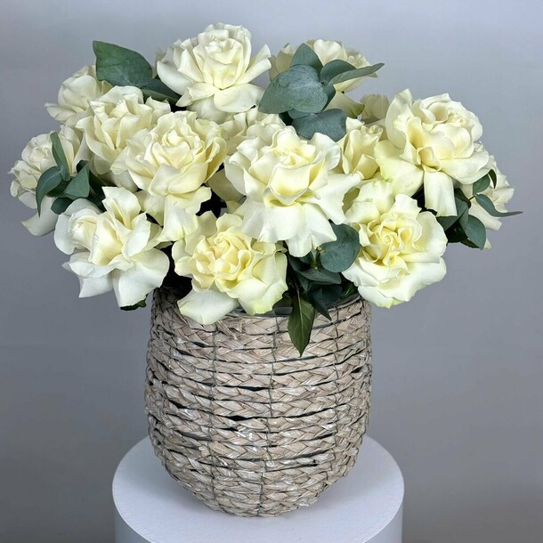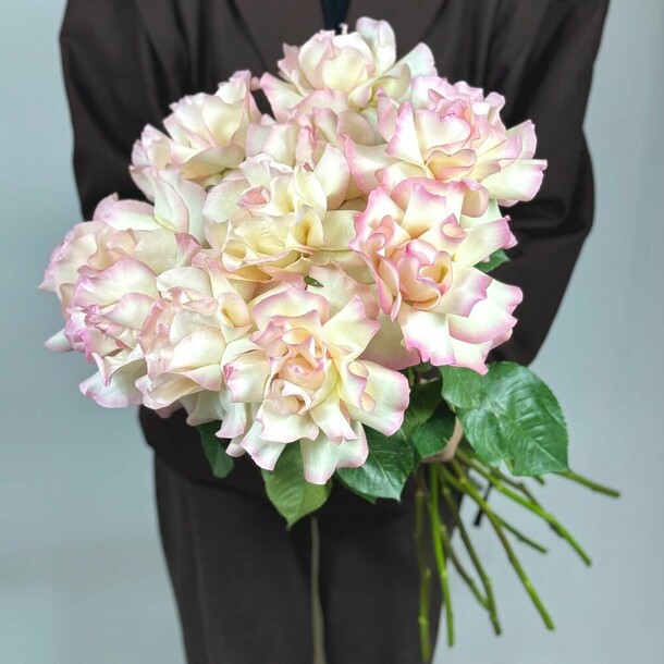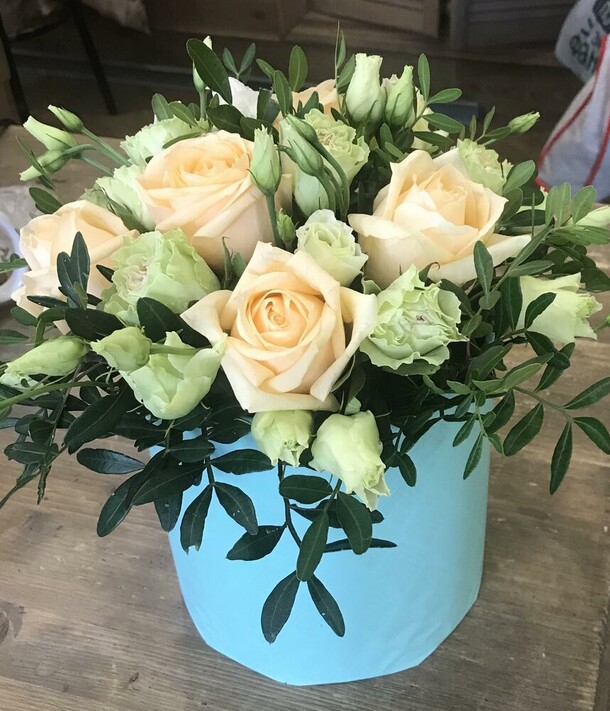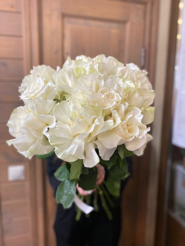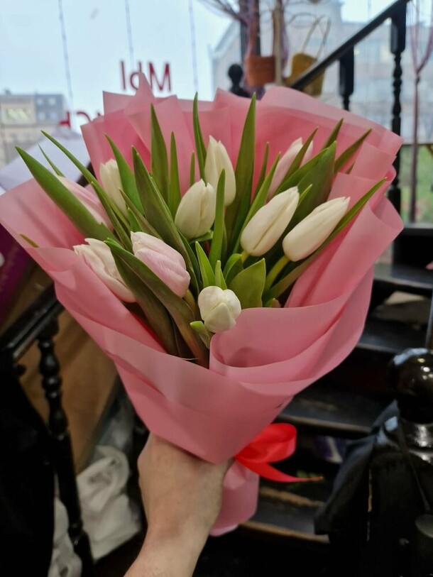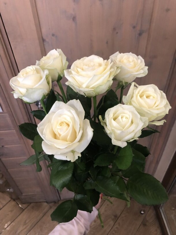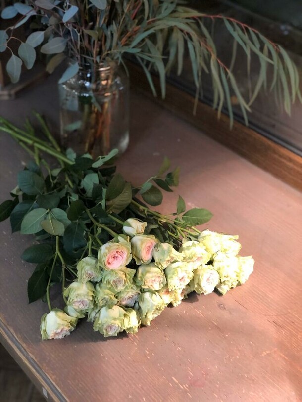 были большие надежды на этот букет. почему-то только после оплаты мне сказали, что розовые цветы плохого качества, поэтому сделают с белыми. и всё было бы хорошо, если бы они и правда были белыми, но они наполовину зелёные и это очень портит картину. я ведь могла просто заказать другую композицию 🤷🏼♀️ разочарована подарком