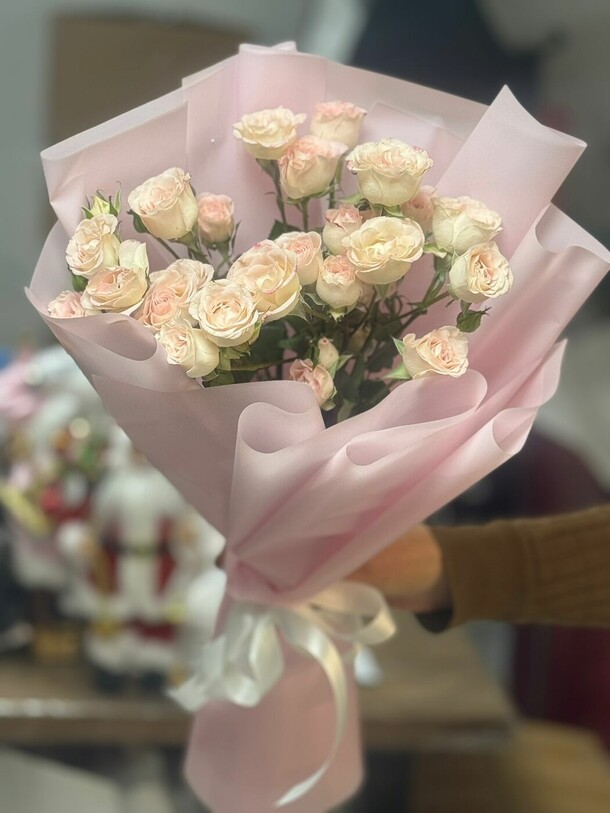 Букет чудесный! Нежный и очень свежие Цветы! Доставили очень быстро! Спасибо огромное!