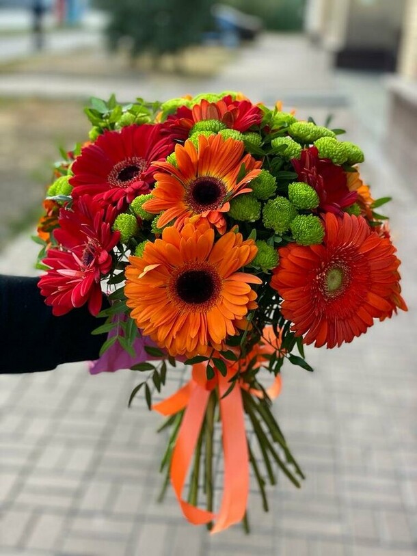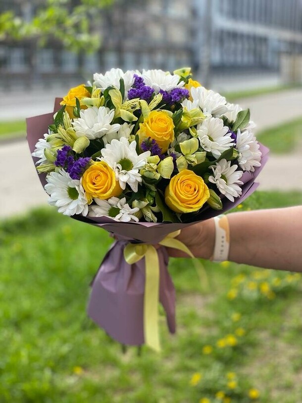 Букет красивый, цветы свежие, соотношение цена-качество отличное, сняли одну звезду, так как заказывали доставку в интервале с 20:00-21:00, но про наш заказ забыли, хорошо, что напомнили, но привезли в 01:00. Понимаем, что перед 1 сентября, но понервничали, так как телефоны уже не отвечали, связи с курьером нет.