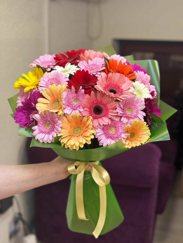 Оченьхорошая обратная связь от продавца, быстро, честко.Согласовал внешний вид, прислав фото.Доставка быстрая, курьер любезный.Цветы свежие.