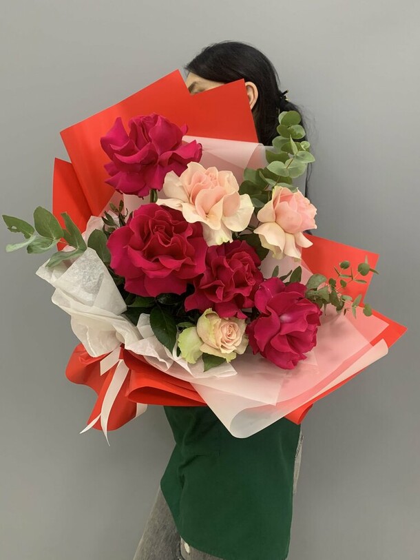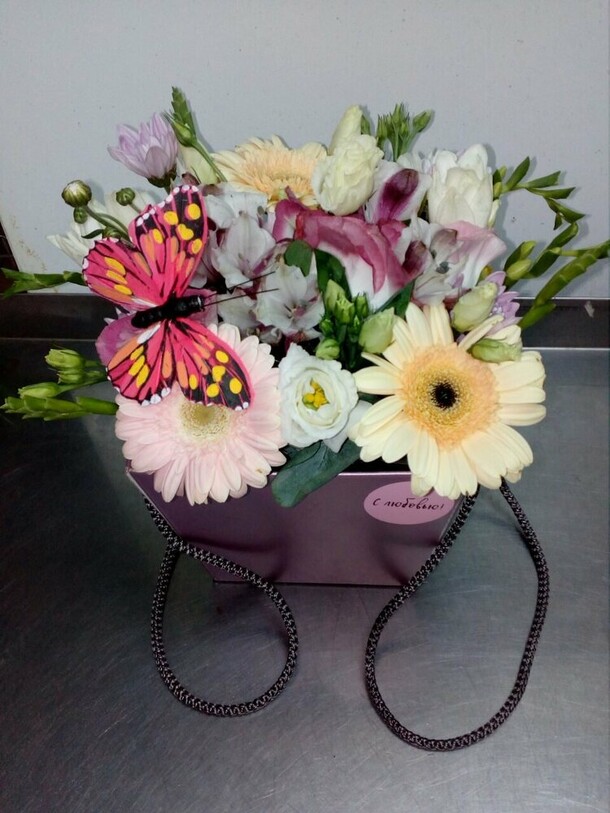 Не учтены пожелания по времени доставки. Букет не особо соответствует фото, выглядит неаккуратно, не таким пышным, цветы не особо свежие. Ещё и не могут передать курьеру номер получателя, хотя информация была передана