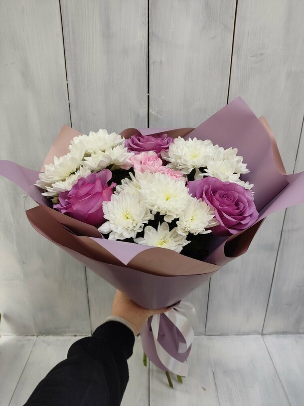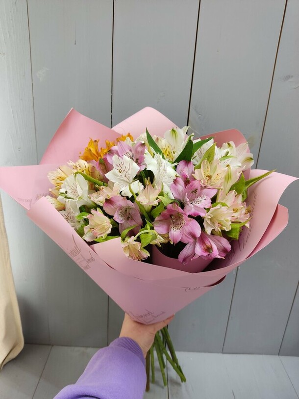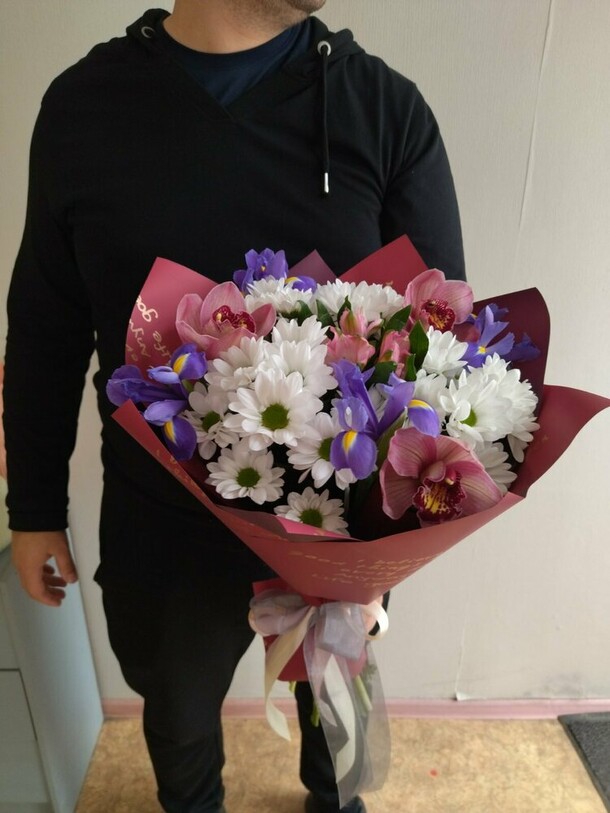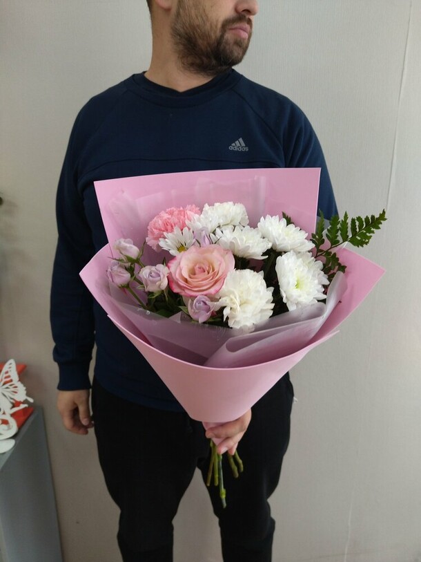Реальный букет немного отличается от представленного на фото. Но тоже очень красивый. Несколько раз переносили время доставки, флористы отнеслись лояльно. Сервисом остались довольны.
