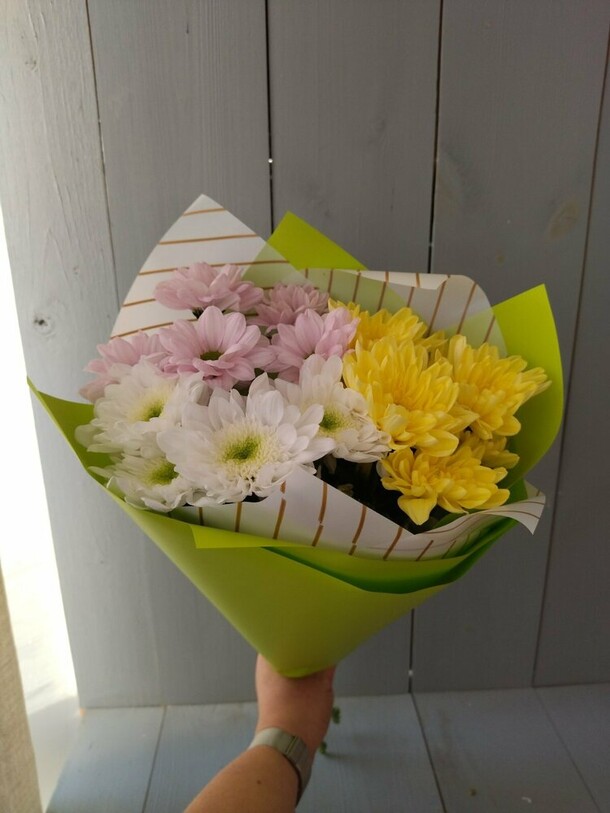 Сервис на самом высоком уровне) Заказала бабушке на Годовщину Свадьбы по акции сумочку хризантем с доставкой. Все чётко, слаженно, ярко и очень красиво! Букет волшебный! Спасибо огромное)!!