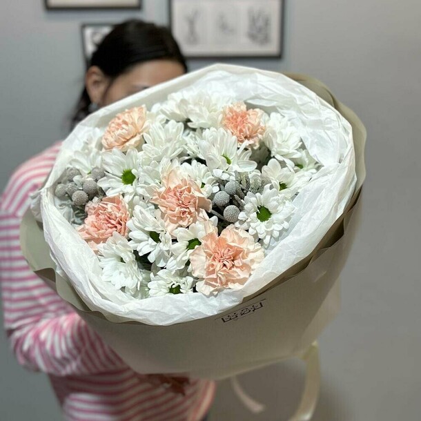 Заказ делала впервые. Прислали фото готового букета, есть небольшие расхождения с изначальной картинкой,но выглядит в итоге не хуже а даже лучше.😊 Единственный минус доставка. Зачем делать функцию "доставка ко времени", если все равно доставляете не ко времени. Курьер привёз букет на пол часа позже.