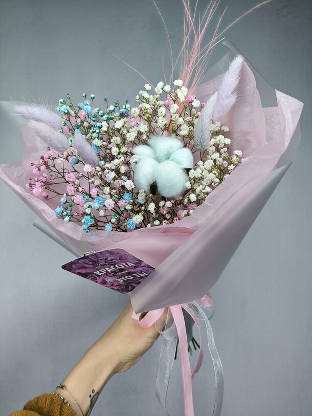 все прекрасно, человек остался доволен и доставка была вовремя, все совпало с ожиданиями, а ещё порадовала инструкция к букету