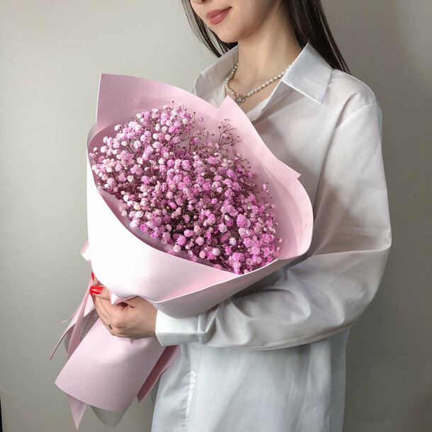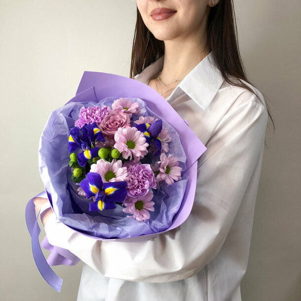 Букет совсем не такой как на фото!размер меньше вдвое,цвет не лиловый,а розовый!в общем совсем не то