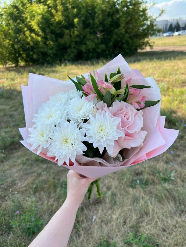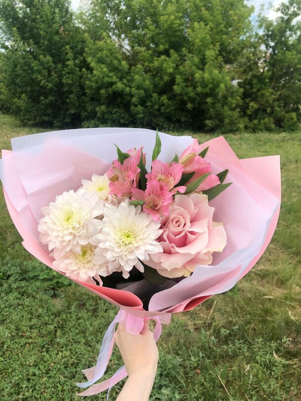 приятный сервис, первый раз заказывал. все супер. фотографию прислали до отправки, в чате на все отвечали. доставили четко по времени. со слов получателя цветочки прекрасны)