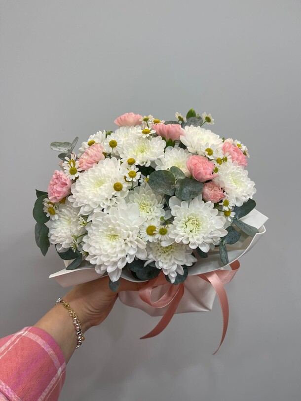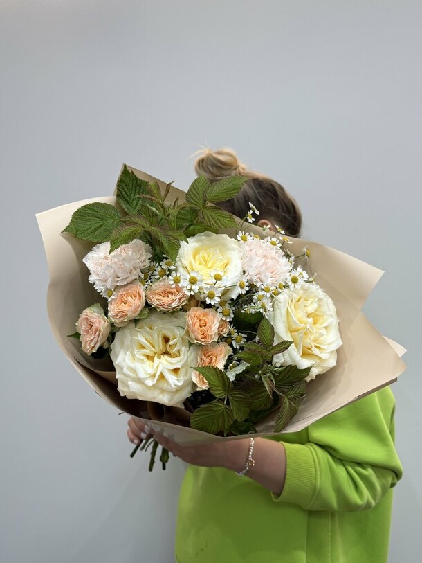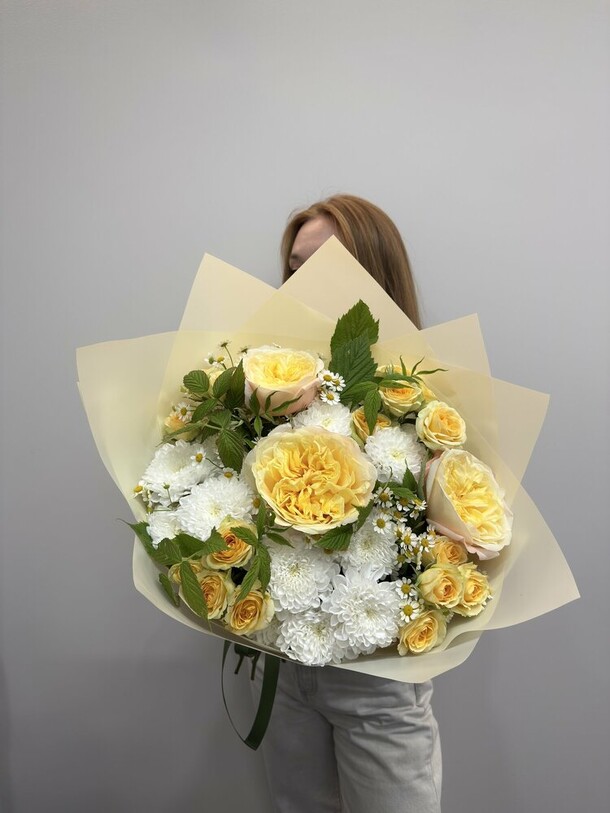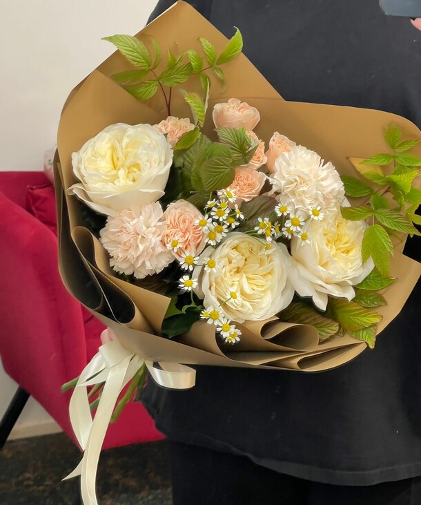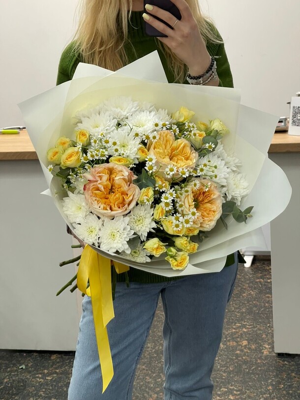 Сделали оперативно, прислали фото и быстро отправили. Курьер приехал вовремя. Букет практически идентичен. Также вложили открыточку с подписью по моей просьбе. Спасибо!