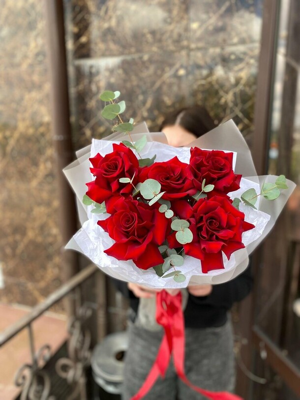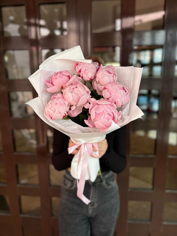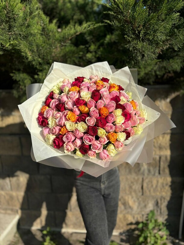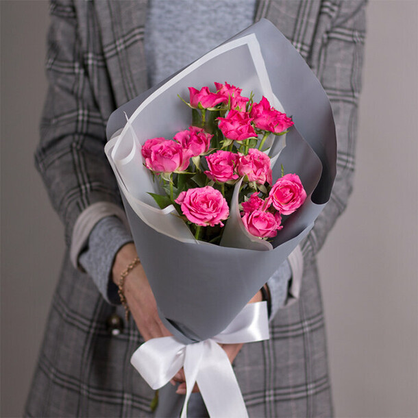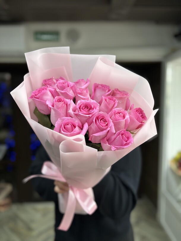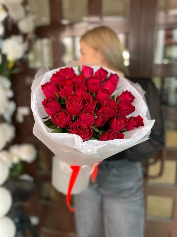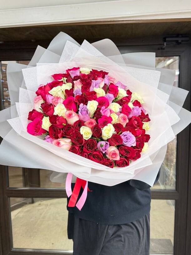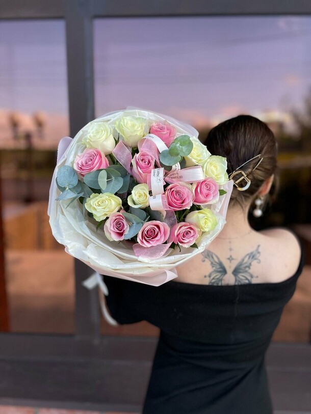 На фото в букете пионовидные розы, по факту обычные розы другого сорта