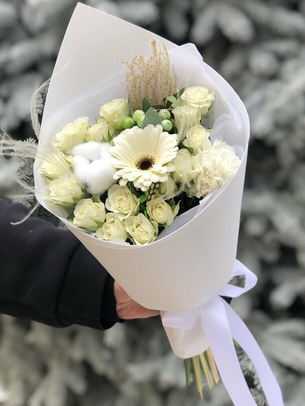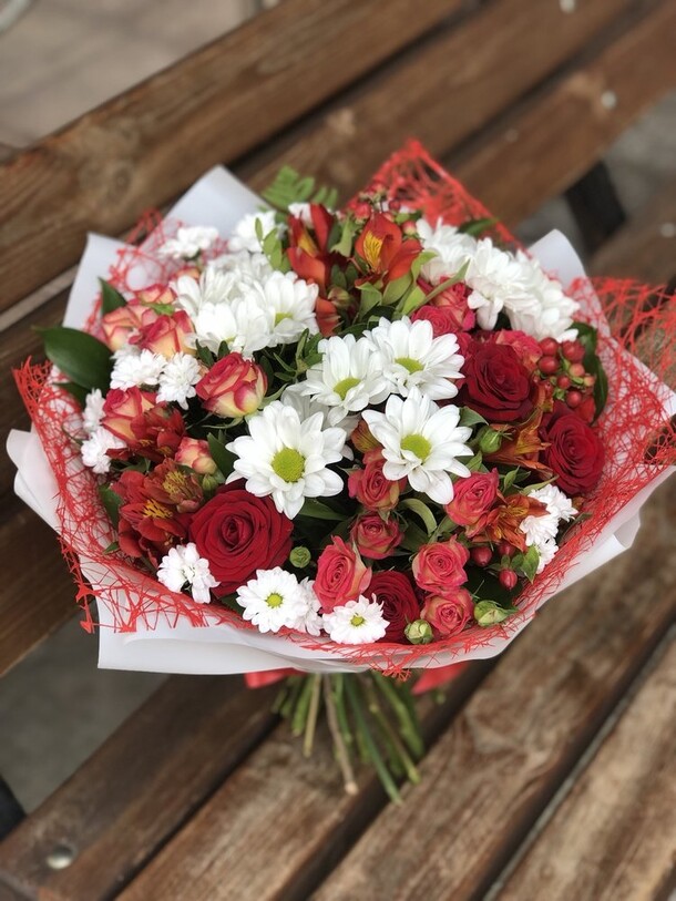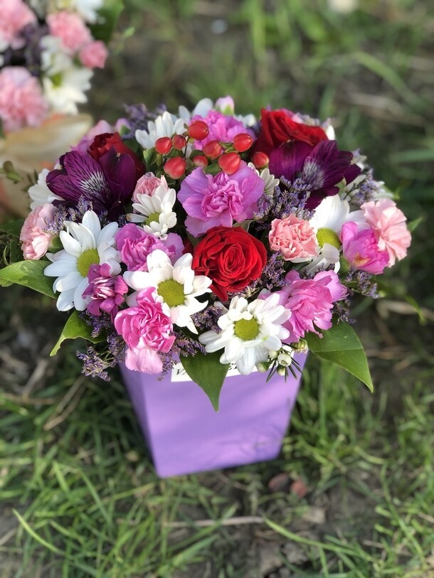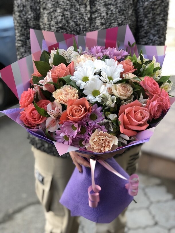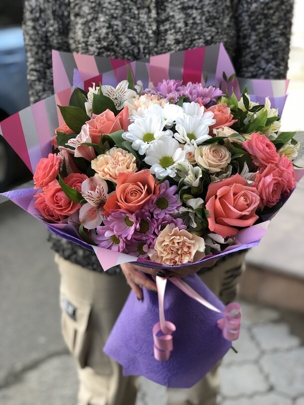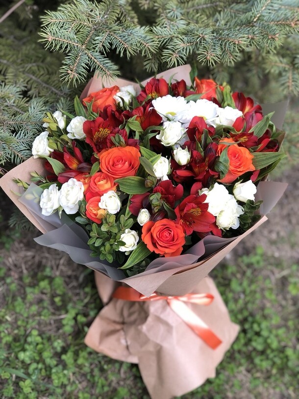 Очень красивый букет, доставлен вовремя. Обратимся обязательно ещё не раз в этот салон цветов