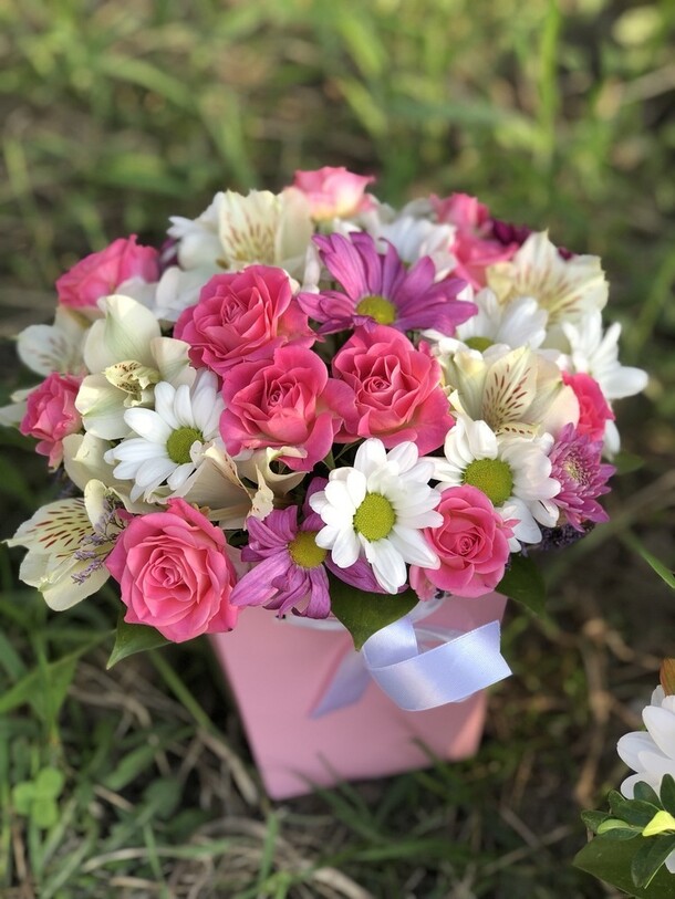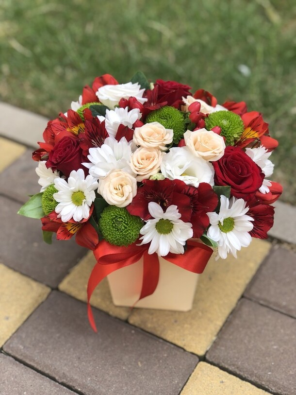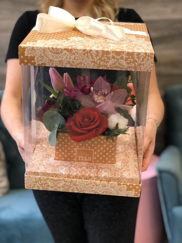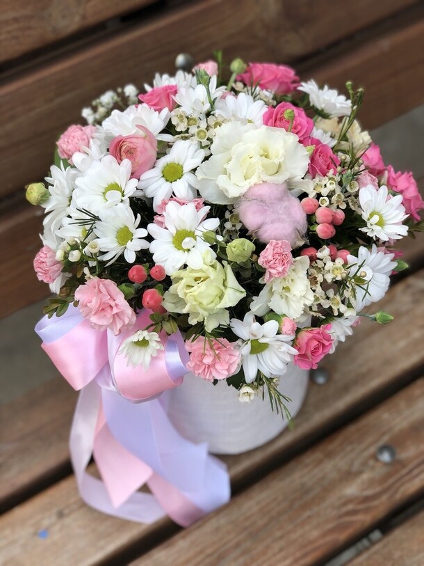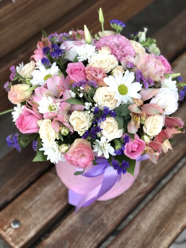 Спасибо флористам за работу, все вышло здорово! Единственное, подкачал курьер по времени, но бывает