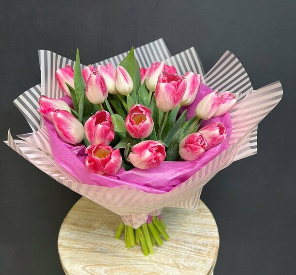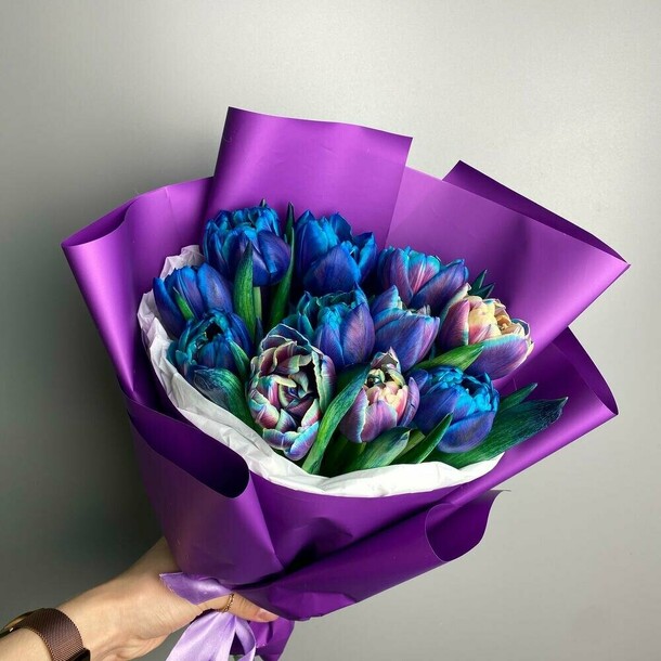 Красивый букет, но уже почти тюльпаны все раскрылись. Недолго простоят(
