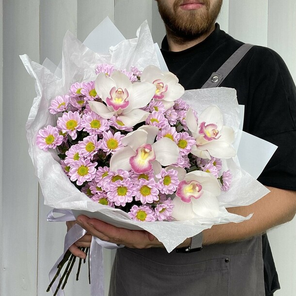 доставка с идеальным таймингом, цветы - свежие, красивые, восторг! общение по заказу тоже очень дружелюбное и приятное! 10/10